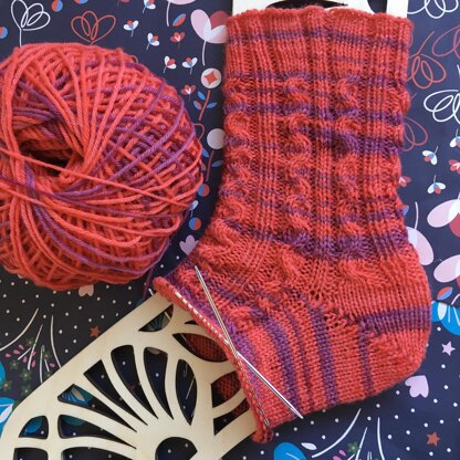 Here you get nice summer socks with an interesting pattern on! It is recommended to use binger needle size (2,5 mm) from size 39 on (as written in the instruction). Have fun!