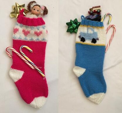 Cute heart for girls, or any lady, and a truck pattern for boys (and even guys)! Use worsted weight yarns (a size 4 yarn) and knitting needle US# 8. Make lots for everyone on your gift list!