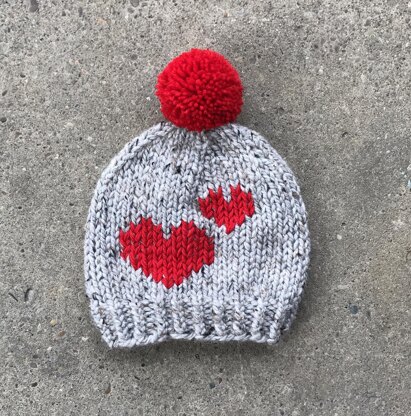 You should be familiar with duplicate stitch before you knit this hat. The pattern includes a chart for the heart design but does not give detailed directions for working in duplicate stitch. It's not difficult to learn though, and there are several great tutorials online.