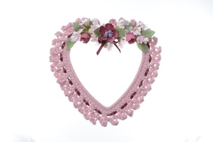 These Heart Wreaths/Frames make lovely, light-weight decorations. The lacy knitted edging sets off a photograph as a frame. Or hang the heart on a door or wall for a splash of color!