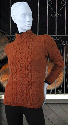 I’ve always liked combining cables with panels of lace, textured stitches, or even plain stockinette. While allover designs have a great visual and technical appeal, I especially like the sophistication of motifs centered on the body and sleeves. Some waist shaping and use of set-in sleeves keep the fit more on the feminine side. The full-fashioned decreases at the armholes and sleeve caps lend this pullover a classy silhouette.