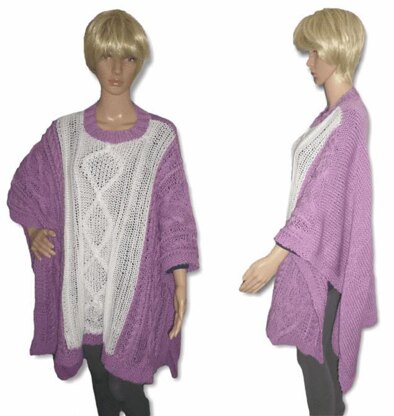 Written Instructions, Chart, and photos for knitting this Hearts & Cable Poncho. Wearing this Poncho is like wearing a cozy warm sweater blanket. The cute cabled heart design with the diamonds in the front and the subtle triple heart design on the back of the Poncho. The Back of the poncho is a modern few inches longer than the front. The Poncho is not closed on the sides making it easy to slip on and go.