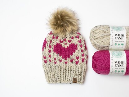 Our chunky heart pompom hat knitting pattern is perfect for making handmade gifts for your loved ones, young and old.