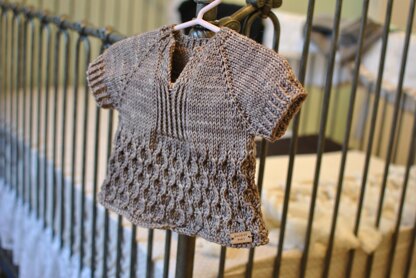 Heather May Tunic is an adorable tunic top. This is knit top down, with an A-line body This has a few easy short rows to make it fit well and can be lengthened to a dress length The lace are charted and written out The tag is by Deep Grain on Etsy