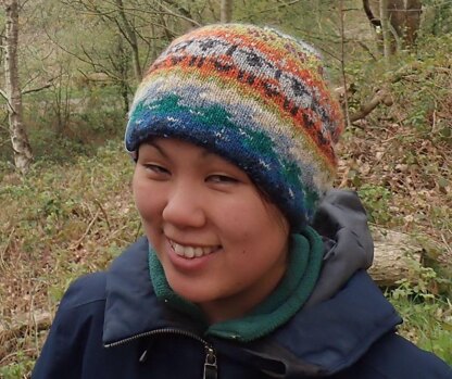 This hat is made using motifs from that cardigan, but I knitted it in scraps of KDD Milarrochy Tweed. You could make it in any fingering weight yarn and it would be excellent for using up bits and pieces