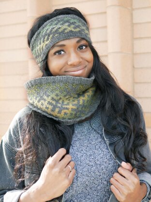 A graphic plaid spreads playfully across the surface of this cozy cowl in two sizes (petite/tall). This stranded colorwork project pairs a strong natural gray for the foreground shapes with a bright gradient yarn that provides shifting background colors in just one skein. Colors may be reversed to create softer, less distinct foreground shapes. Use soft, lofty yarns that will bloom easily for a final result with a consistent surface.