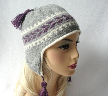 Upbeat twist to a traditional ethnic inspired hat. Ear flap style beanie for toddlers, children and adult/teens. Tasseled embellishments added. Easily completed in a few evenings.