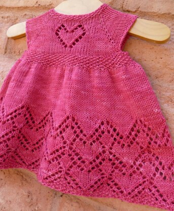 Top down construction, with a sweet little heart on the bust, a rich lace hem and a full princess skirt.