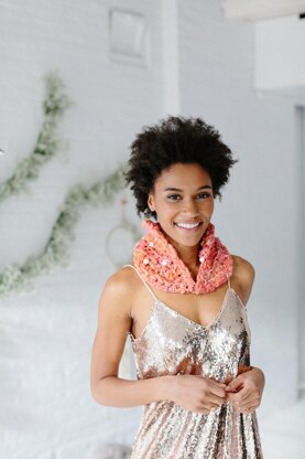 Why should I make this: This cowl uses decorated yarn to perfectly highlight its uniqueness. The decreases create a less bulky back – that you can transform as the front of the piece to frame your face.