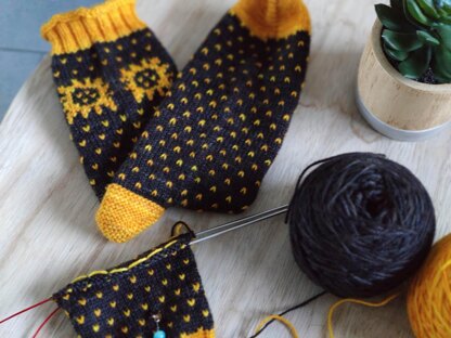 -Thread : These socks are knitted with a fingering weight yarn in 2 colors.