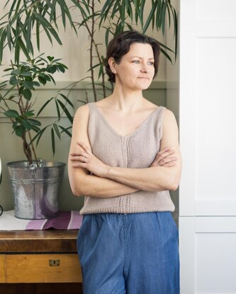 This simple top is a comfortable project, a quickly knitted summer garment that will be ready in no time. The top is knitted top-down, initially flat, and then in the round.