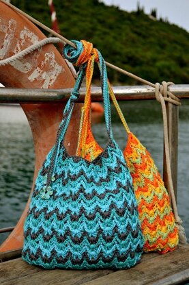 The ripple of the water on the side, The ripple of olive and citrus groves... Hello Greece! Bags are worked top down in the round. You do not need to seam the bottom, as it is joined during crocheting.