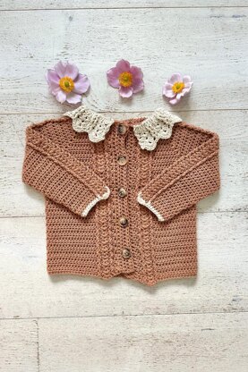 The Henrietta Cardigan is the perfect mix of modern and vintage. There is a gorgeous intricate lace detailing incorporated into the design that will give you such joy! The cardigan is worked from the top down all in one piece. Only simple stitches are used including hdc, dc, fpdc, bpdc and chs. I used a cotton dk yarn but this would work equally well in acrylic or wool. Style the cardigan with a dress or with your little one’s favourite pair of jeans and they will look adorable. Be sure to check out the matching Henrietta Bonnet!
