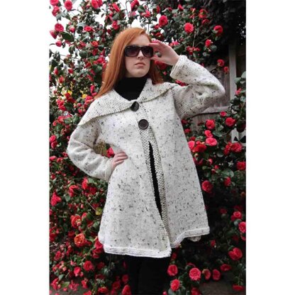 This original designer knitwear pattern from Award Winning Designer Marianne Henio is the coat knitting pattern for the Hepburn Coat, based on the 1950s style of Audrey Hepburn and the post war ‘New Look’. Using a chunky yarn Marianne has created an A-Line coat with a oversized Seed Stitch collar and hems. The fasteners are press studs adorned with two large buttons.