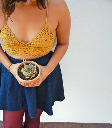 The Here Comes the Sun Bralette is such a fun top to make and to wear! It has a lot of detailed around the cups and the band and adjustable straps.