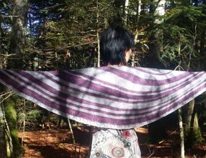 The shawl consists of: garter stitch, textured stitch and a few short rows. All RS rows begin and end with two increases (kfb), and all WS rows begin and end with an increase (kfb), creating a semi-circular shape. The shawl ends with a lace border.