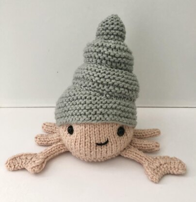 This PDF pattern will instruct you on how to knit my original 2022 Hermit Crab. This pattern is a perfect beginner pattern. You only need to know how to decrease and knit in the front and back for increases. Hermit Crab measures 6 inches tall, and 8 inches wide from claw to claw. Materials: Worsted Weight yarn: Orange/Peach and Light Grey Poly-fill stuffing Pair of size 3 (U.S.) knitting needles Yarn Needle One pair size 9.00 mm black safety eyes with washers. Scrap of black yarn or thread for the mouth Pins- to arrange pieces for sewing. Techniques: Knit and Purl Stitch Casting on and casting off Knit 2 stitches together Purl 2 stitches together Knit in the front and back of the stitch - increase.