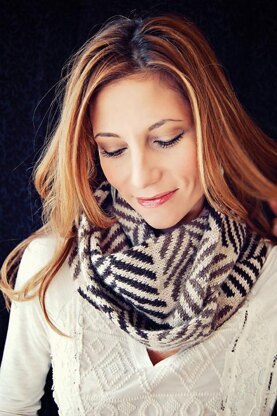 With its herringbone inspired graphics and beautiful artisian yarns, Herrington is a stylish and functional knit to add to your cooler weather accessories. The pattern offers directions for either a 3-color infinity scarf or a 2-color standard cowl. Worked in the round, it uses a provisional cast on and Kitchener stitch grafting. You can’t go wrong with this fun to knit and easy to wear design.