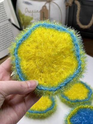 The patters was tested with cotton and scrubby sparkle yarns, but I believe the result will look good with any medium acrylic yarn