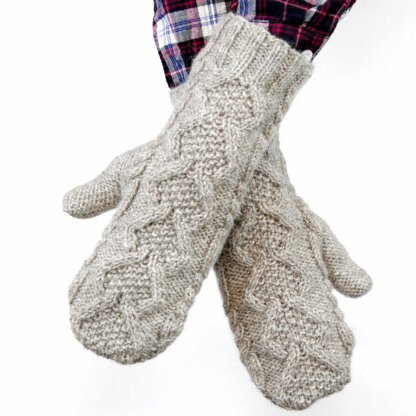 Hibernia Mittens are knit in the round from the cuff up. An all-over cable pattern that runs on both sides of the mittens makes them extra squishy and warm. The mittens feature a gusseted, reverse-stockinette thumb that grows organically between the cables. These ornate mittens come in two sizes and make for excellent gifts for both men and women alike.