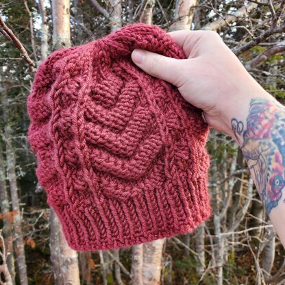 The Hidden Trail Beanie creates a warm, soft hat that has a great texture. The patterning is made from simple stitches that make for an interesting, eye catching knit.