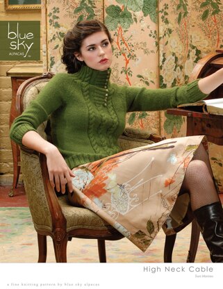 High Neck Cable Sweater in Blue Sky Fibers Suri Merino - Downloadable PDF
