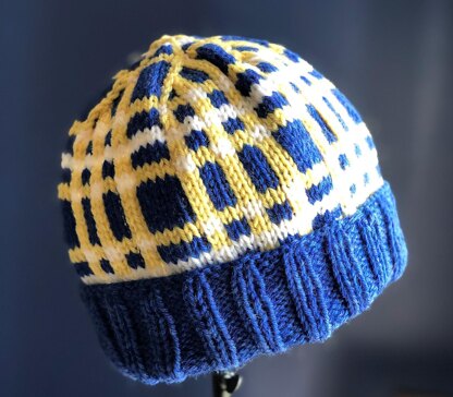 This hat features a fun 3-color plaid design with a fold-over brim for extra warmth.
