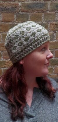A simple, fitted tam, knitted in two shades of Shetland yarn. The pattern is knitted from the brim.