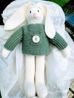 A soft cuddly bunny rabbit, which was inspired by a ball of possum silk merino yarn. This is knitted in 4ply/fingering yarn and is pictured (main) in machine washable merino.