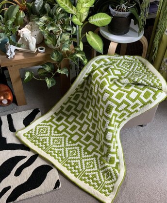 The Hip to be Square blanket is made using the overlay mosaic crochet technique. It can be made to any size required by following repeats. Gauge is not important. Yarn used is not important.