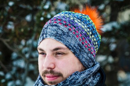 Ever become obsessed with a fabric you’ve created with your yarn and needles and want to use it with absolutely everything? That’s the rabbit hole I fell down while participating in another round of the Artesanitarium Design Challenge. For this round of the challenge, our prompt was to combine two design features - After a vote with the rhyFlower test team, we decided to go forth with texture and colorwork. This was going to be a challenge for me indeed! Colorwork is not one of my stronger skills, but I agreed to go with whatever the team had chosen, so the ball was in their court! - I fell so in love with the colors and textures of Hip to be Square that I couldn’t stop knitting it and went from a cowl design to adding in a hat and mittens too.