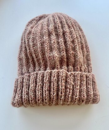 His and Hers Hats are worked in the round using a classic rib and a slipped stitch pattern for a ribbed effect throughout. It creates a very snug fit at the top. It’s worked holding two strands of Drops alpaca, creating a plush, warm fabric.