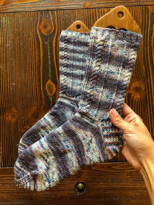 I’m so excited to bring you another pattern in my men’s collection. As with all my men’s patterns they are designed with the men in my life in mind. This pattern has a simple cable and twisted stitch detail. This was designed to be on the leg only but you can continue on the foot if you’d like. They are very unisex and would be a great gift knit for anyone who is lucky enough to get some handknit socks!