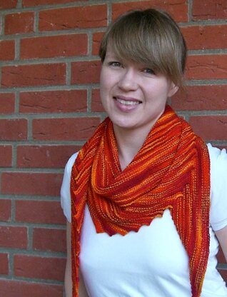 Garter stitch. It‘s simple, its warm and squishy, stretchy and reversible and it makes any variegated, hand-dyed sockyarn really shine. So here‘s Hitchhiker: It is a narrow, slightly asymmetrically shaped triangular shawlette that can be wrapped around the neck several times. The ends are long enough to tie it with a knot. One of the short sides of the triangle features a saw-tooth border that evolves naturally during the knitting and gives the shawl its unusual shape. Because the knitting starts at one end, you can stop anytime, bind off and end up with a useful neckerchief, shawlette or shawl. A perfect project to relax in between more complicated ones, also very suitable for beginners and young knitters.