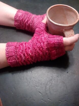 These lovely fingerless mitts work up very quickly and are snugly warm, perfect for dog walking, a drafty office or for hands that stay cold for what ever reason!