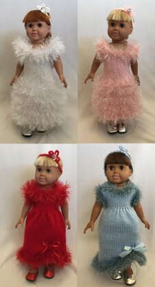 Holiday Evening Gowns, Knitting Patterns fit American Girl and other 18-Inch Dolls
