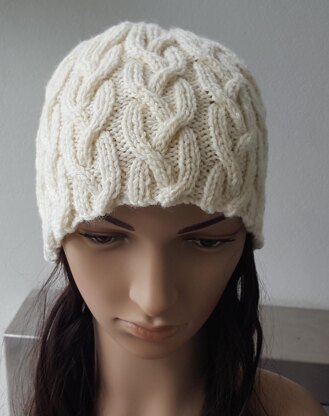 This Beanie is worked in a twelve row cable pattern although cables are only worked in two of those rows. The crown shaping rows are done in rib.
