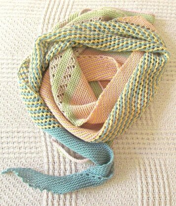 Hollybank is knitted end to end on the bias. In four distinct sections it incorporates a combination of garter stitch, lace and stripes so is an ideal pattern for both beginner and intermediate knitters.