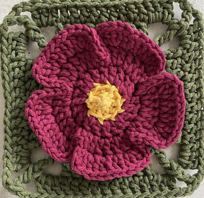 Finished Size: The completed Hollyhock granny square measures approximately 15 cm, offering versatility for inclusion in afghans, blankets, or other home decor projects.