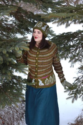 This is a pattern for a knitted cardigan worked using the stranded colourwork technique. It is worked from the top down, with a steek, and afterthought pockets (optional).