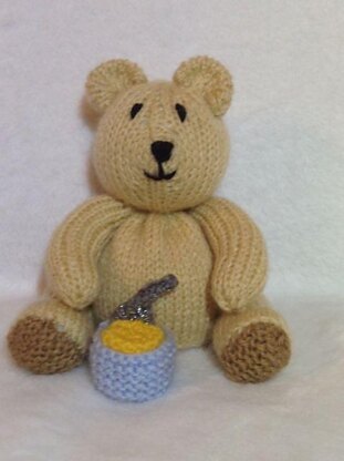 This gorgeously cute teddy bear with a pot of honey knitting pattern can be used as a chocolate orange cover or stuffed using the base pattern to make a lovely 15 cms soft toy.