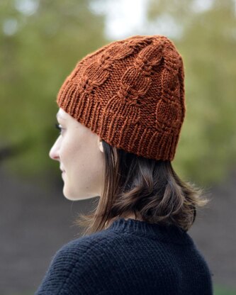 HONEY RYE is a cozy, snuggly beanie hat featuring a classic ribbed brim and a beautiful cabled stitch. Pattern gives instructions for a simple and double (folded) brim.