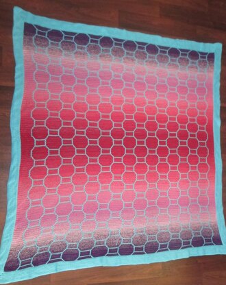 i used 2 whirls and 5 whirlettes. turkish delight and tasty treat. 10cm square is 22 stitches and 11 rows completed blanket with correct tension measures approx 1.6 meters wide by 1.6 meters square. thechnique is mosaic overlay with a double border to hide all the ends.