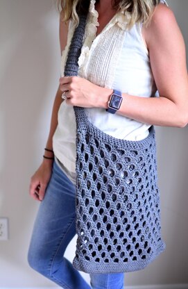 This beautiful crocheted tote bag features a modern and stylish look with "honeycomb" scallop-type stitches. The pattern includes a step-by-step photo tutorial for reference.