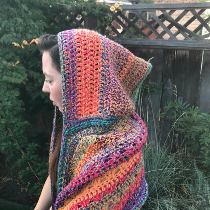 Introducing the Harmony Hooded Pocket Shawl, which is an advanced beginner friendly pocket shawl. I used Red Heart Roll With It Tweed Yarn. I chose the colourway Lilac Breeze for this pocket shawl.