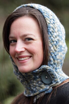 - Top down hooded scarf: 1½” x 2” large button Buttoned cowl: 1¼” x 1¼” medium button 110 yds Cowl neck 315 yds Top down hooded scarf 450 yds Bottom up