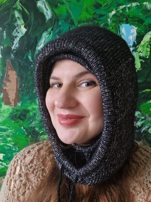 This is going to be your all-time favorite cozy winter headwear! It is comfortable, it is warm, it is cozy, and you can adjust how toasty you would like it to be, and it is made in one piece. It is a hood and a balaclava, two in one.