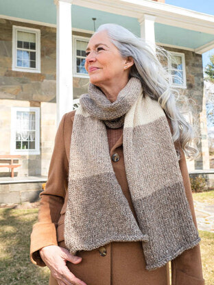 Enjoy the warmth and comfort of this simple color-blocked scarf. Its understated, serene style combines with a beginner-friendly stockinette stitch for an approachable project that is infinitely useful.
