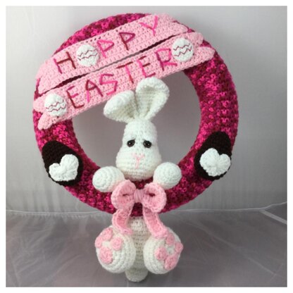 This is a pattern for a very sweet Easter wreath, with a super cute bunny :) It even has a couple of chocolate easter eggs with white icing hearts (made out of yarn) but almost cute enough to eat. This would make the cutest decoration for your front door or anywhere in your home.