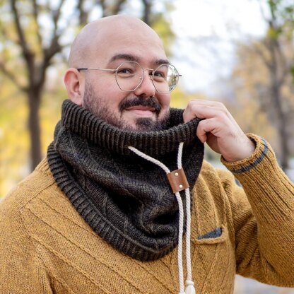 This cowl is the result of a collaboration with my friends from Les Garçons, Maxim and Vincent. Vincent dyed a perfect color on this unique Aran base and Maxim, an illustrator by profession, took the opportunity to create a pin from my little boston terrier that wears my design. Me and Les Garçons have been friends for many years and it was high time that we joined forces with a 3 way project.